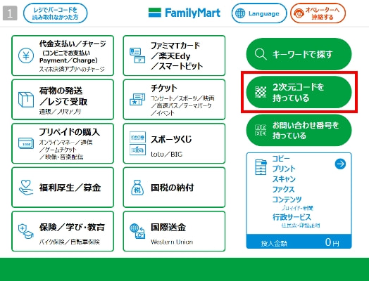 「2次元コードを持っている」を選択
