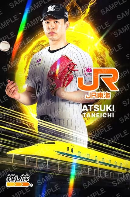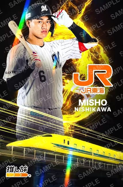 東海道新幹線に乗車すると、 MARINES COLLECTION内(Mコレ)で コラボ限定電子トレカがもらえる シリアルコードが取得できる! 前期、後期で各3種の計6種が登場! どれがもらえるかはランダム!