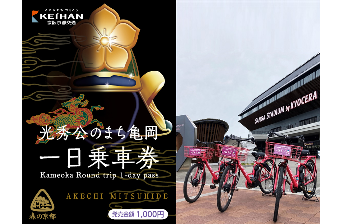 ①亀岡市内バス1日乗車券、レンタサイクル1日プランの何れか1点