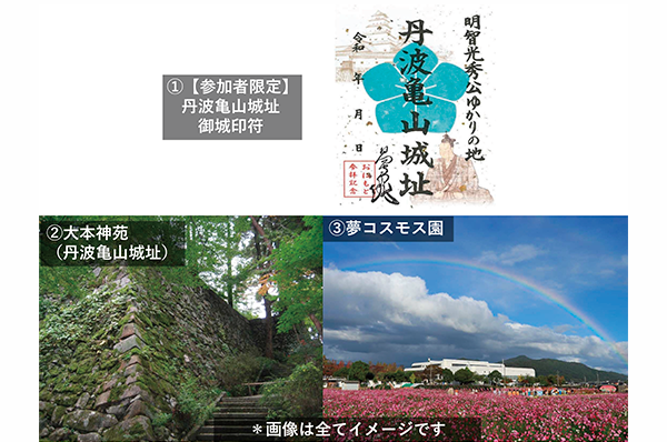 ②丹波亀山城址御城印符、「ずらし旅」参加者限定「体験引換券」の何れか1点